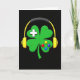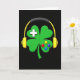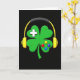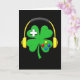 Designed with a four-leaf clover reimagined as a modern game controller, this St. Patrick’s Day card centers a glowing green shape on a deep black background for strong contrast 💚. Each leaf becomes part of the controller, with a crisp white directional pad on the upper-left and four action buttons on the upper-right in yellow, red, and two shades of blue. A pair of bright yellow over-ear headphones arcs over the clover, and the dark gray padded band adds a soft, close-to-the-skin detail that hints at cozy shared listening ☘️. The clover’s surface shows subtle texture with darker green speckles, giving it a lightly worn, well-loved look like something two friends might pass back and forth. The main message sits above the clover in bright green lettering, while a smaller line of text rests below in white for balance. The overall scene feels like a quiet nod between gaming buddies, where luck and late-night matches meet in the same frame. The black field stays uncluttered, keeping every button, curve, and headphone highlight sharply defined.