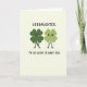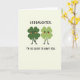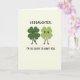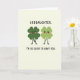 This card shows two friendly four-leaf clovers standing side by side on a creamy off-white background, leaning toward each other as if sharing a private joke 💚. One clover is a deeper emerald green and the other is a brighter lime green, giving them a sweet contrast that feels like two close companions. Their black, sparkling eyes and rosy cheeks create a soft, affectionate look, and their wide smiles make them seem warmly connected. Thin black stick-like arms and legs add motion, as though they’re gently swaying together under a bit of lucky charm ☘️. Centered at the top, the word “GODDAUGHTER.” appears in black, all caps, with a simple, modern look. Centered beneath the clovers, “I’M SO LUCKY TO HAVE YOU.” is also in black, all caps, and spaced to feel balanced with the artwork. The two shades of green stand out crisply against the pale background, with the clovers’ rounded leaves and tiny blush circles clearly defined.