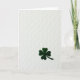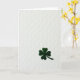 This card shows a single four-leaf clover in deep emerald green resting in the lower-right area of a wide white background 💚. The clover looks soft and felt-like, with rounded leaves that seem to lean gently toward each other like close friends sharing a quiet moment. A faint shadow beneath it adds a touch of depth, as if it’s just lifted off the surface. The white space around it feels calm and open, giving the little clover room to stand out without crowding the scene ☘️. There’s no printed message in the design, so the top and center stay clear for your own words. The background isn’t flat; it has a subtle vertical ribbed texture that catches the light softly. In the lower right, the plush green clover sits against the textured white field, its edges slightly raised with a soft shadow tucked underneath.