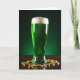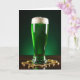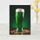 This card shows a tall pint glass filled with emerald-green beer that seems to glow from within, topped with a thick cap of creamy white foam. Behind it, a smooth gradient of deep green shades sets a cozy St. Patrick’s Day mood, while the dark wooden tabletop grounds the scene with a warm, pub-like feel. A small scatter of shiny gold coins rests near the base of the glass, catching the light like little promises shared between close friends. Tiny bubbles rise through the green drink in neat streams, adding a lively sparkle that pairs nicely with a clink-and-cheers moment 💚. The main greeting text sits near the top in light cream lettering, standing out clearly against the darker green background. A smaller line of text appears near the bottom in soft gold, echoing the coins and tying the colors together ☘️. The foam edge is bright white with gentle curves, and the coins show crisp highlights along their ridged rims.