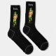 Lucky green gnome holding a clover and gold confetti on black Socks. Text can be personalized.