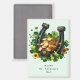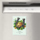 Magnet with a St. Patrick's Day themed image. A black and gold horseshoe sitting in a bed of green clover with shiny gold coins.