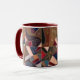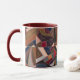 This striking two-tone mug features the beautiful patchwork crazy quilt design of an unidentified early twentieth century American craftsperson. Enjoy the intricate vintage details - including a horse, butterfly, flower and cat. See if you can spot the horseshoe, too. According to legend, a horseshoe facing upwards in a "U" shape is said to keep evil out and bring good luck into your home! Featured here is a maroon handle/interior, but black is also lovely with the quilt tones, or select another color you like from the available options. A perfect gift for a quilt-lover or antique-lover, for a housewarming, or for a fan of Americana. (Original quilt: Smithsonian American Art Museum, Gift of Raymond Vlasin and family, with deepest appreciation for the many friends with whom Claire Vlasin quilted).