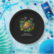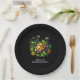Paper plates with a St. Patrick's Day themed image. A black and gold horseshoe sitting in a bed of green clover with shiny gold coins.
