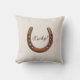 Lucky Horseshoe pillow. Large horseshoe on the front with the word 'Lucky!' - back has a horseshoe patter. You can change the background colour and play with the pattern to get the look you want for your Farmhouse Decor.