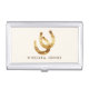 Design features two golden watercolor horseshoes and your name or choice of text. Perfect for horse trainers, riding instructors, stable owners and other equestrian occupations! Matching business cards and accessories are available in our shop.
