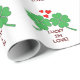 Drawings of four-leaf clovers with heart shapes floating over them.
