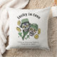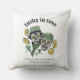 This Irish "Lucky in Love" throw pillow features hand-drawn sugar skulls outfitted in Irish hats and scarves surrounded in gold shamrock coins and green clovers. Elegant white background. Personalize with couple's names and wedding date. Ideal for newlywed, anniversary, wedding, wedding shower, bridal shower, etc.
