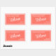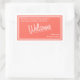 This funky rectangular out of town gift bag wedding sticker features a tilted Welcome in white, along with your personalized white text on a coral pink background. After a long day of driving or flying to your wedding, welcome your out of town guests with a welcome bag full of snacks, drinks and local souvenirs. This glossy sticker on the front of the welcome bag gives a charming touch. Coordinating products available.