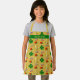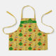 Kid's apron with lucky pattern of horseshoes, 4-leaf clovers, and rainbows with pots of gold. Perfect for the Irish family and kids who love to bake. The apron is gold color with an all-over pattern and green strip for the childs name.