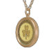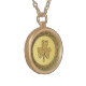 I chose gold plated so that the metal would not react with my skin oils and perspiration. But, I changed the necklace from the gold plated one to a sterling silver. My skin cells will tarnish the silver. But it will not look as bad if some portion of the gold plated necklace somehow became compromised. Zazzle did a find job turning the picture into a pendant for me. As you can see, the colors and the printing of the final product, match the preview. The picture I took is not very clear. But I am pleased with the product I received.