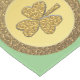 This awesome table runner features a graphic image of a gold coin with two shades of gold. The outer circle has a rough texture. Inside the inner circle of the coin is a textured golden shamrock made up of 3 leaves and a stem.