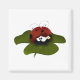 Adorable little ladybug cartoon image. Red and black ladybug is sitting on a clover. Customize by changing background color.