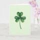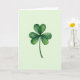 This card centers on a single three-leaf clover, painted in watercolor and set against a pale, airy green background that leaves lots of open space around it. The clover sits calmly in the middle like a small token you might press into a note for someone you care about, with its three heart-shaped leaves leaning toward one another in a close, friendly cluster 💚. Color shifts across the leaves from deeper emerald along the outer edges and shaded folds to lighter lime where the light seems to land softly. The watery paint edges blur slightly in places, giving the clover a gentle, lived-in look rather than a sharp outline. Fine, faint veins run through each leaflet, adding texture without making the design feel busy. A thin, curved stem sweeps down from the leaf cluster, like a quiet gesture reaching out ☘️. There’s no lettering on the front—just the centered clover on a soft green wash with subtle watercolor blooms and feathered edges.