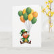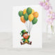 This design shows a rosy-cheeked leprechaun floating mid-air, lifted by a cluster of balloons, with a wide grin and bright blue eyes that seem to meet yours like an inviting friend. He wears a green top hat topped with a shamrock, and his red-orange beard fans out in thick waves against a green jacket and yellow waistcoat with shiny gold buttons. The background stays white and open, so the green, yellow, and orange balloons stand out clearly, adding a cheerful St. Patrick’s Day feel 💚. Thin gray strings gather into his small hand, and his other arm reaches outward as if he’s waving to someone just off the page. His bent legs and tilted posture give the scene a light, buoyant motion, like he’s drifting past a parade crowd and catching a familiar glance ☘️. Any text would sit neatly above or below the floating figure in green lettering, leaving plenty of breathing room around the illustration. The balloons have a glossy highlight, the strings angle upward in a tight bundle, and the shamrock on his hat sits slightly to one side.