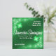 Green invitations featuring a lighted glowing design/illustration with shamrocks.
