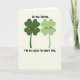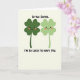 This greeting card shows two friendly four-leaf clovers standing close together on a creamy, softly lit background, their leaves overlapping as if they’re leaning in for a quick hug 💚. The left clover is a deeper emerald green, while the right clover is a lighter spring green, creating a sweet contrast that hints at an older-and-younger bond. Each clover has simple black dot eyes, a wide curved smile, and small coral-pink blush spots that make their shared grin feel affectionate and a little bashful ☘️. Above their heads, the words “LITTLE SISTER.” sit centered in dark, hand-drawn lettering that stands out clearly against the pale backdrop. Below the pair, “I’M SO LUCKY TO HAVE YOU.” is also centered in the same dark lettering, tucked neatly under their smiling faces. The open space around them keeps the focus on their closeness, like they’re posing for a tiny keepsake moment. Soft shading around the clovers and the gentle glow behind them give the scene a cozy, calm finish. Share St. Patrick’s Day sentiments with someone special, with the two green clovers framed by airy cream space and coral blush accents.