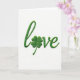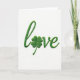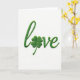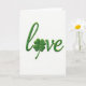 The front design shows the word “love” stitched in emerald green thread across a bright white background, with a four-leaf clover standing in for the “o” ☘️. The flowing lettering curves gently from left to right, like two people leaning toward each other in a quiet, affectionate moment. Soft, even light catches the raised stitches and casts tiny shadows that give the letters a subtle 3D look. The clover’s four rounded leaves feel plush and carefully formed, adding a lucky little pause in the middle of the word 💚. The green thread looks fresh and springlike, making the white space around it feel airy and open. The text sits centered on the front, with no extra lines or borders, letting the single word take all the attention. The stitches are tightly packed along each curve, and the clover’s leaf edges are neatly defined against the white surface. Share St. Patrick's Day sentiments with someone special, and let the emerald thread and clover shape stand out crisply in the center.