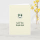 This card features a simple smiling face centered inside a white circle, outlined in deep emerald green, with two dark green four-leaf clovers standing in for the eyes 💚. The clover “eyes” give the face a sweet, affectionate look, like it’s smiling right at a beloved great aunt with quiet closeness. Everything sits on a warm off-white background with lots of open space, keeping attention on the green details. Beneath the circle, a thin horizontal green line runs across as a divider, adding a tidy, balanced structure. Under that line, the message “Love You Great Aunt” is placed in a strong sans-serif style and colored in the same deep green ☘️. The limited palette—cream and emerald—keeps the design calm and focused while the clovers add a gentle St. Patrick’s Day nod. The circle, divider line, and text are stacked neatly down the center, with the green elements standing out against the soft background.