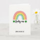 This greeting card features a tall, white background with a soft watercolor rainbow centered near the top, its arcs moving from coral and warm orange through gentle yellow, green, and calm blue, each band dotted with small white circles like tiny droplets. Just below the rainbow, the words “Lucky one” sit in a flowing, handwritten look in dark ink, giving the design a sweet, close-to-you tone 💚. On either side of that phrase, two three-leaf shamrocks mirror each other in rich emerald green, like a pair leaning in to frame the message together ☘️. The roomy white space around everything keeps the focus on the rainbow and clovers, letting the colors feel airy and light. Near the bottom, “JOIN US FOR THE FEST” is set in all caps in a simple sans-serif style, aligned neatly and reading like an easy invitation. The mix of the tender rainbow and the matched shamrocks suggests a friendly bond, like two people sharing a lucky moment under the same sky. The rainbow’s pastel bands and the shamrocks’ deep green stand out crisply against the bright white field, with the dotted highlights scattered evenly across each arc.