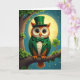 This design shows an anthropomorphic owl perched calmly on a sturdy, gnarled tree branch, dressed for St. Patrick’s Day in emerald green with a top hat, bow tie, and jacket topped with a tiny shamrock pin ☘️. Its rich orange-and-cream feathers look soft and layered, and its oversized black-and-gold eyes seem to linger on you with a gentle, almost flirty curiosity. Behind the owl, a huge full moon in warm honey tones glows like a halo, casting a tender light that makes the scene feel like a quiet midnight meet-up. The night sky is deep teal, dotted with small golden orbs that read like distant stars, adding a dreamy, close-to-the-heart mood 💚. Clusters of green shamrocks sit along the branch and peek from the upper foliage, tying the outfit to the setting and surrounding the owl like a lucky little frame. A short St. Patrick’s Day greeting sits near the top in light lettering that stands out against the dark sky, with a smaller line placed below in matching color. The textures are easy to picture—rough bark underfoot, smooth fabric on the jacket, and fluffy feathers lit by moonlight, with shamrocks scattered along the branch beneath the glowing moon.