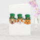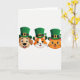 This card shows three cute animal friends posed together on a bright white background, leaning close as if they’re sharing a private joke 💚. A brown dog sits in the middle with an easy, welcoming look, while an orange-and-white cat and an orange cat flank it, their faces turned forward with soft, friendly expressions. Each one wears a green leprechaun hat with a gold buckle, and the cats’ hats include small shamrock details for an extra St. Patrick’s Day touch ☘️. The colors stay simple and cheerful—warm fur tones against the white space, with the green hats standing out clearly. Near the top, the greeting text is set in green, centered so it feels balanced above the trio. The illustration uses smooth shading and neat outlines that give the characters a gentle, rounded look without adding any background clutter. The hats sit slightly tilted, with the buckles catching the light and the shamrocks tucked along the hatbands. To share St. Patrick’s Day sentiments with someone you care about, the three animals are arranged in a tight row with their hats aligned and their faces evenly spaced across the page.
