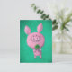 Lucky pig with lucky four leaf clover postcard
