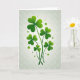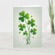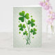 This greeting card features a bouquet of five three-leaf clovers rising like a small gathering of friends, their stems crossing near the bottom as they lean toward each other 💚. The clovers are shaded in greens from light lime to deep emerald, and each leaf has a gentle heart-like curve that adds a soft, affectionate touch. A thin white outline traces every leaf and stem, helping the shapes stand out from the pale sage background. Behind them sits a faint diamond lattice pattern, like a quiet wallpaper that keeps the scene calm and airy. Small solid green dots are scattered around the bouquet, adding little pops of energy like confetti for St. Patrick’s Day ☘️. There’s no character face, but the upward fan of stems and the larger clover at the top create a tender, togetherness-in-motion feeling. The greeting text is placed near the top in white, centered above the tallest clover, with the pale geometric pattern still visible underneath. The largest clover sits at the apex, with the other four fanning below it against the soft sage field and subtle lattice.