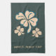 Lucky Shamrock Clover Happy St. Patrick`s Day kitchen towel. Hand-drawn clovers with four leaves for the luck. You can change the text or erase it.