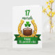 Designed with a bright white background, this St. Patrick’s Day card centers on a shiny gold horseshoe that curves around a deep green shamrock, like a lucky charm meant to be shared 💚. Just beneath the shamrock sits an American football with clear white laces, tucked in close as if it belongs in the celebration. The lighting is even and glossy, giving the horseshoe a reflective gleam and the icons a lightly raised, dimensional look. At the top, the text “17 march” appears in emerald green, set above the main emblem with plenty of open space around it. A ribbon banner stretches under the football, carrying the message “Happy St. Patrick’s Day” in green lettering that follows the banner’s curve ☘️. The classic green-and-gold pairing feels friendly and a little romantic, like two symbols leaning toward each other in the center of the page. The horseshoe’s metallic highlights catch along its outer edge, while the shamrock’s rounded leaves sit neatly framed inside. Share St. Patrick’s Day sentiments with someone you care about, and enjoy the gold horseshoe’s polished shine against the white field.