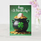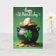 This greeting card shows a matte black cauldron in the center, overflowing with shiny gold coins that tumble over the rim like a shared treasure between close friends. A bright green shamrock with three heart-shaped leaves sits on the front of the cauldron, drawing the eye with a soft glow and a cozy, affectionate feel 💚. Resting on top of the coins is a white baseball, and its red stitching adds a small, sweet contrast, like an inside joke between someone you care about and someone who gets you. Behind everything, a smooth gradient of greens sets a festive St. Patrick’s Day backdrop without pulling attention from the pot and coins ☘️. Near the top, the words “Happy St. Patrick’s day” appear in white, centered above the scene so the message reads clearly at a glance. Lighting highlights the cauldron’s dark finish and the coins’ reflective edges, giving the pile a textured, almost touchable look. The shamrock’s green stands out crisply against the black pot, while the baseball’s white surface stays bright against the surrounding gold and green. The coins scatter outward in small stacks and loose pieces along the lower edge of the design.