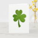 This card features a three-leaf shamrock centered on a wide white background, letting the simple shape feel close and intimate, like a small token passed between friends 💚. The three heart-shaped leaves meet at the middle and extend from a gently curved stem, giving the clover a soft, affectionate look. Shades of green shift from deeper emerald in the shadows to lighter lime highlights, as if the leaves are catching a bit of sun. A fine speckled texture across each leaf adds a natural, slightly rustic touch, like you could almost feel the surface with your fingertips. The open space around the clover keeps the focus on the symbol, leaving room for a quiet, shared moment ☘️. Any greeting text would sit neatly above or below the clover in a simple green tone that matches the leaf highlights, staying easy to read against the white. The overall layout stays centered and balanced, with the shamrock’s three rounded leaves forming a tidy triangle against the bright white field.