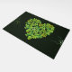 Outdoor mat. Lucky shamrocks in a heart. Customizable background color.