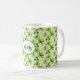 Get your Irish luck with this beautiful St. Patrick's Day mug! Bright green shamrocks on a light tan background are sure to be a favorite. Personalize with your name in an oval badge.