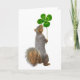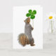 A squirrel holds a four leaf clover. Send out this cute squirrel card for Saint Patrick's Day.