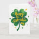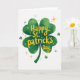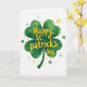 Designed with a large four-leaf clover in emerald green at the center, this St. Patrick’s Day card sets a sweet, friendly scene on a bright white background. The clover’s rounded leaves have a watercolor-like texture with gentle shading that makes it feel soft and inviting, like something you’d tuck into a note for someone you care about 💚. Across the middle of the clover, the words “Happy St. Patrick’s Day” sit prominently in golden-yellow lettering that stands out clearly against the deeper green. The text stretches comfortably from left to right, giving the message the spotlight without crowding the artwork. Around the clover, tiny golden starbursts sparkle like little winks shared between close friends, adding a light, celebratory mood. Small green dots and a few miniature three-leaf shamrocks drift near the edges, creating the look of a gentle confetti shower ☘️. Share some St. Patrick’s Day sentiments with someone you love, and let the scattered shamrocks and starbursts frame the clover like a soft border on the white space.