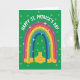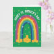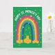 This design shows an emerald green background sprinkled with small shamrocks, setting a cozy St. Patrick’s Day scene. A wide rainbow 🌈 stretches across the card, with clear bands of color flowing from purple through red. Little white starbursts dot the rainbow like tiny sparks, adding a soft glow that feels like a shared secret between friends. At the lower end of the rainbow, shiny gold coins gather in loose piles, with a few stacked and a few tipped over as if someone just set them down for a sweetheart to find. Some coins show a small shamrock mark, tying the treasure back to the holiday ☘️. Near the top, the words “HAPPY ST. PATRICK’S DAY” arc across the sky in white letters that stand out against the green. Share St. Patrick’s Day sentiments with someone you care about 💚.