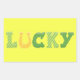 A great St. Patrick's Day themed sticker, the background is yellow with "Lucky" written in green Irish themed letters. Order yours today!