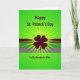Designed with a bright neon-green background, this St. Patrick’s Day card features chartreuse sunburst rays spreading out from behind a large four-leaf clover in a deep, nearly blackish purple at the center. Near the top, a few smaller shamrocks in lighter green float above the main clover, like little accents sprinkled across the glow ☘️. A wide horizontal band runs through the middle in dark reddish-brown with a softer lighter stripe, giving the scene a grounded layer beneath the radiating green. At the top, the phrase “Happy St. Patrick’s Day” sits centered in the same deep purple as the main clover, standing out sharply against the bright background. Along the bottom, “To My Wonderful Wife” appears in matching deep purple, framing the design with a close, affectionate tone 💚. The strong contrast between the purple clover and the green rays makes the center feel like it’s drawing you in, as if the message is meant for one special person. Tiny green shamrocks hover above the central clover while the brown band slices across the middle under the sunburst.