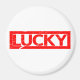 Well Designed High Quality Magnet. Colors are Vibrant Clear Excellent good size Diameter Circumference Fonts Red Folio Bold Clover Green Outline Puffy White Interior Image