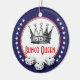 Calling all Bunco Queens to show their pride in being a Bunco Queen. Red,white and blue design features lucky stars,a royal crown for the Bunco queen and three white Bunco Dice. Ornament works for Bunko players too!