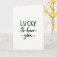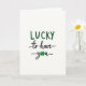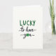 This card features the phrase “LUCKY to have you” centered on a bright white background, keeping the focus on the message and the person it’s meant for 💚. “LUCKY” appears first in large, uppercase, deep emerald letters, giving it a strong, confident look. Just below, “to have you” is written in a thinner, flowing black style that feels softer, like a quiet promise between close friends or partners. The layout leaves plenty of open space around the words, so the message feels direct and intimate rather than crowded. A clever detail replaces the “u” in “you” with a small green four-leaf clover, adding a sweet wink of good fortune ☘️. The contrast of green and black against white keeps everything easy to read while still feeling special. The clover sits right where the “u” would be, matching the green of “LUCKY” and standing out as a tiny focal point.