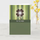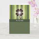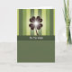 This card features a field of green stripes across the top two-thirds, shifting from lime to deep forest tones to create a gentle rhythm of light and shadow. In the center sits a dark four-leaf clover, edged by a bright starburst glow that radiates outward like a small spotlight ☘️. The contrast makes the clover feel like the focus of a quiet, affectionate moment, as if it’s being held up for someone special to notice. Along the lower portion, a wide olive-green band grounds the layout and adds a calmer, steadier tone. The words “To My Wife” appear centered on that band in clear white lettering, standing out sharply against the darker green 💚. Above it, the layered greens keep the eye moving while still drawing attention back to the glowing clover. The overall scene stays graphic and simple, with the striped background, the illuminated clover, and the solid lower band forming three strong visual sections. The glow around the clover looks like pointed rays spreading into the striped background, while the white text sits neatly within the olive panel below.