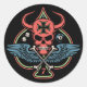 Lucky Winged Maltese Devil Skull of Spades Classic Round Sticker