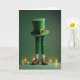 This design shows a stylized leprechaun outfit with an emerald green top hat flowing into matching trousers, ending in polished brown shoes with shiny gold buckles. The clothing appears on its own against a deep green background, like it’s waiting for someone special to step in and sweep a friend off their feet 💚. Soft, diffused lighting glides over the smooth surfaces, giving the greens a rich glow and making the leather and gold look gently warmed. Near the bottom, scattered golden light orbs twinkle across the floor, like a quiet trail that two people might follow together ☘️. Crisp white socks peek above the shoes, adding a neat contrast that makes the darker tones feel even deeper. Any text sits near the top in small white lettering, easy to read against the dark green field. The golden bokeh dots cluster along the lower area, with faint shadows tucked beneath the shoes and trouser cuffs for depth. End with a friendly line about sharing St. Patrick's Day sentiments.