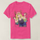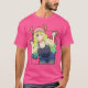 My 11 yo wore adult XL (5’7” 165#). The 8yo is small framed. She wore adult small and tied it in the back. Grandma wore adult large with long sleeve shirt underneath. Tall girl adult medium. Dark haired male adult large. Good quality dark Heather gray, Gildan brand shirt. -it was next up from basic choice and cost about $20 per shirt. Not too thick or thin. Washed and dried well, no major shrinkage. Not see-through. Can wear a bra under it fine. Screen print is just as shown and well done, front and back.
