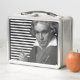 This is a standard metal lunchbox that appears to work just fine. We designed this box ourselves with an uploaded photo and custom text on the front and back. It looks absolutely beautiful except the front of the lunchbox is not centered like it shows in the photo. The print borders don't align with the inset flat part of the box where the preview photo online showed it perfectly centered in there. The back looks nice and centered though.