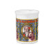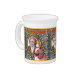 Dogs love classical music. At some animal shelters, the dogs go to sleep each night with the soothing sounds of classical music. When the music begins, they all stop barking and settle down to sweet dreams. The designs in this "Dogs love classical music." series celebrate the intuitive connection between dogs and this wonderful music. The original artwork by ZoeSPEAK on this porcelain Pitcher features a portrait of the composer Ludvig van Beethoven. The portrait is in an ornate gold frame, on a wallpaper background of yellow suns and uplifting spirits against a medium blue. In front is an original photograph of a dog, commenting (in English and French), and pointing with red arrows to the composer. The text says "The Joy of Beethoven", with reference to his ninth symphony, Ode to Joy.