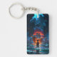 Embark on a legendary journey with this exquisite Anime Voyage Acrylic Keychain. The design captures a breathtaking cinematic moment of a pirate ship illuminated by a glowing sunset against a mysterious dark sea, inspired by the grand spirit of One Piece.