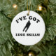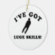 Lightweight, smooth, pure white ornament with nice sheen. Perfect size to be seen from across the room ... and to attract closer inspection! Price was great for ordering enough for the whole family! Clear, bold black design just as requested. Matches the order exactly. Just so nice!